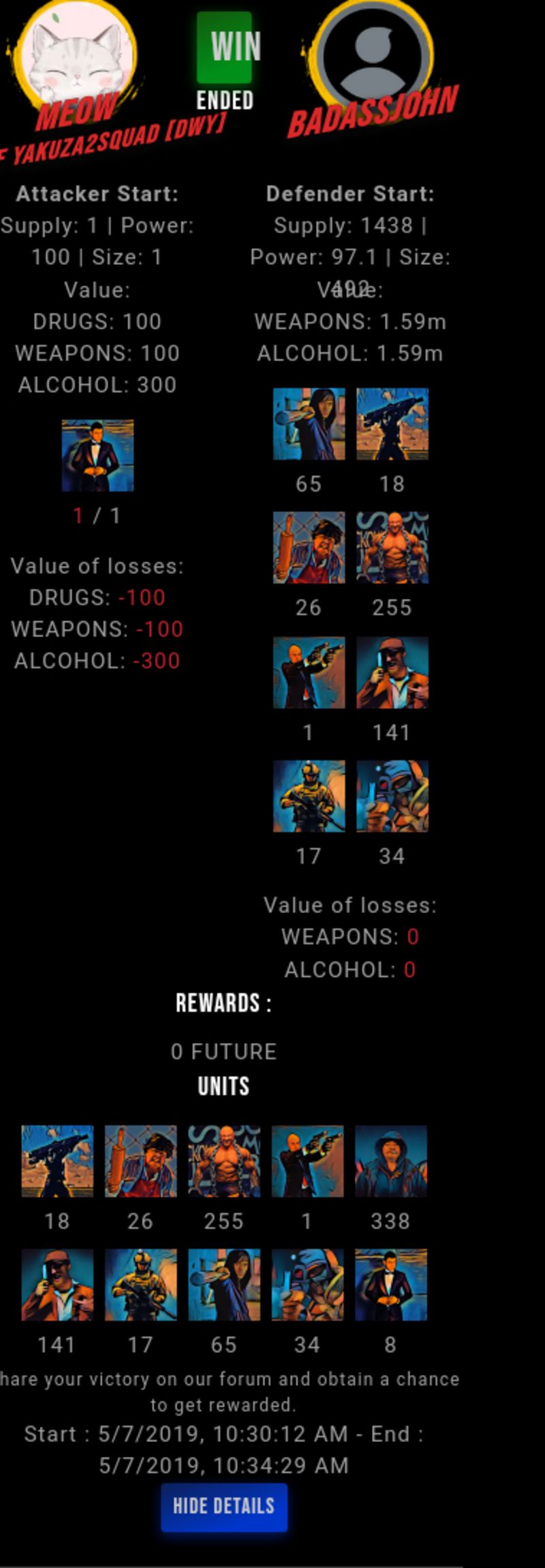 Check my latest fight ! meow vs badassjohnbadassjohn (60)in #drugwars-fight • 7 years ago #gaming #fight #dw