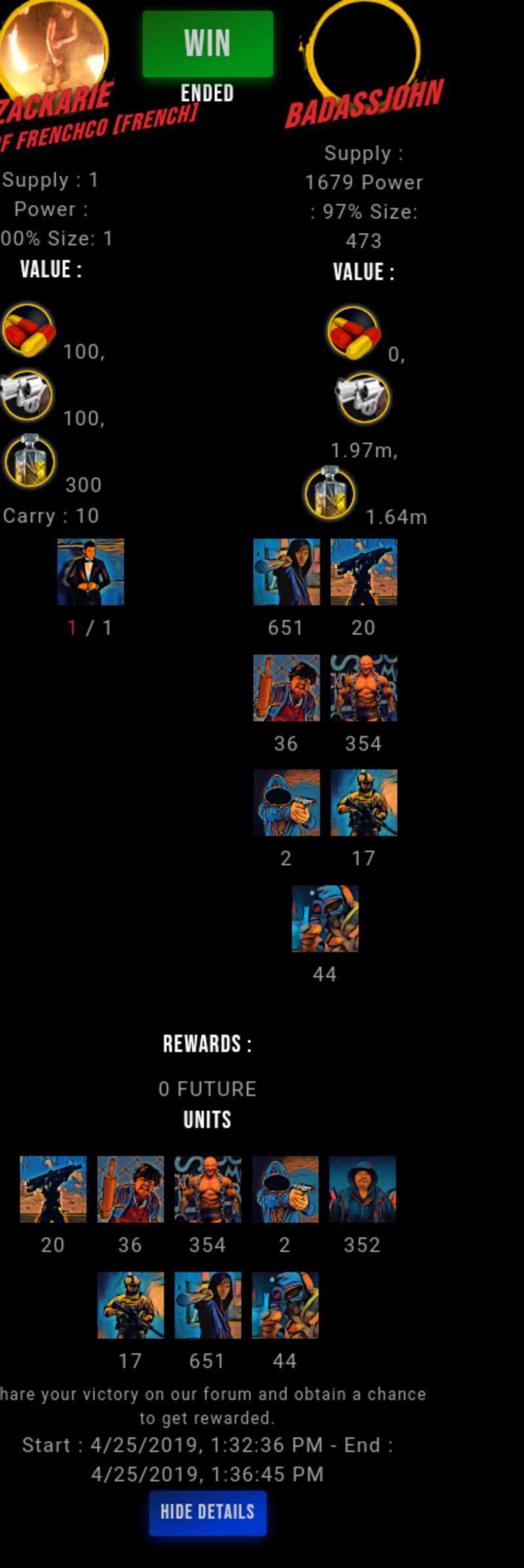 Check my latest fight ! zackarie vs badassjohnbadassjohn (60)in #drugwars-fight • 7 years ago #gaming #fight #dw