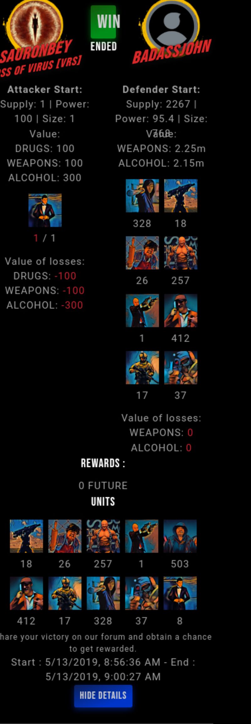 Check my latest fight ! sauronbey vs badassjohnbadassjohn (60)in #drugwars-fight • 7 years ago #gaming #fight #dw
