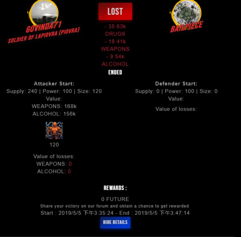 Check my latest fight ! govinda71 vs bailpiecebailpiece (25)in #drugwars-fight • 7 years ago #gaming #fight #dw