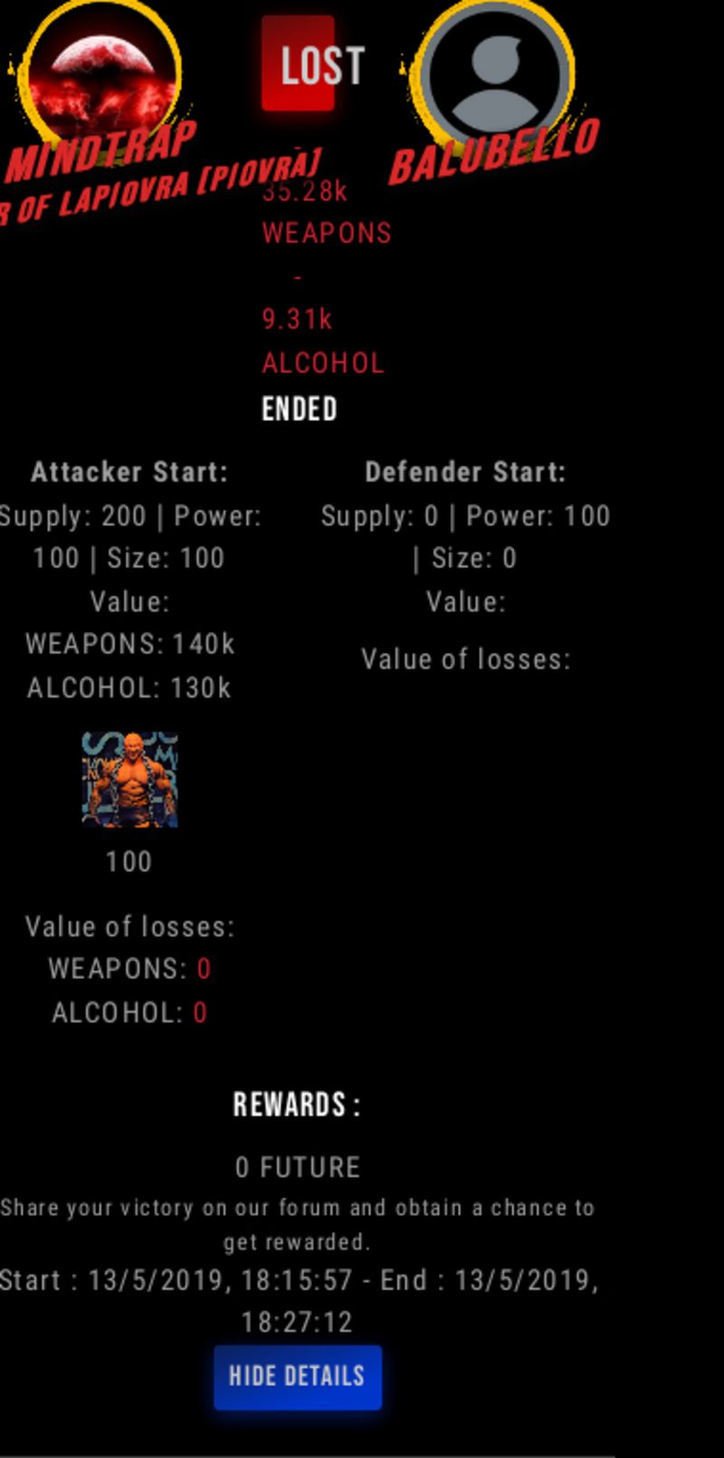 Congratulations @balubello ! Your fight received an upvote of 5% from the Dealer as incentive for your activity and as a gratitude for your support to the game.