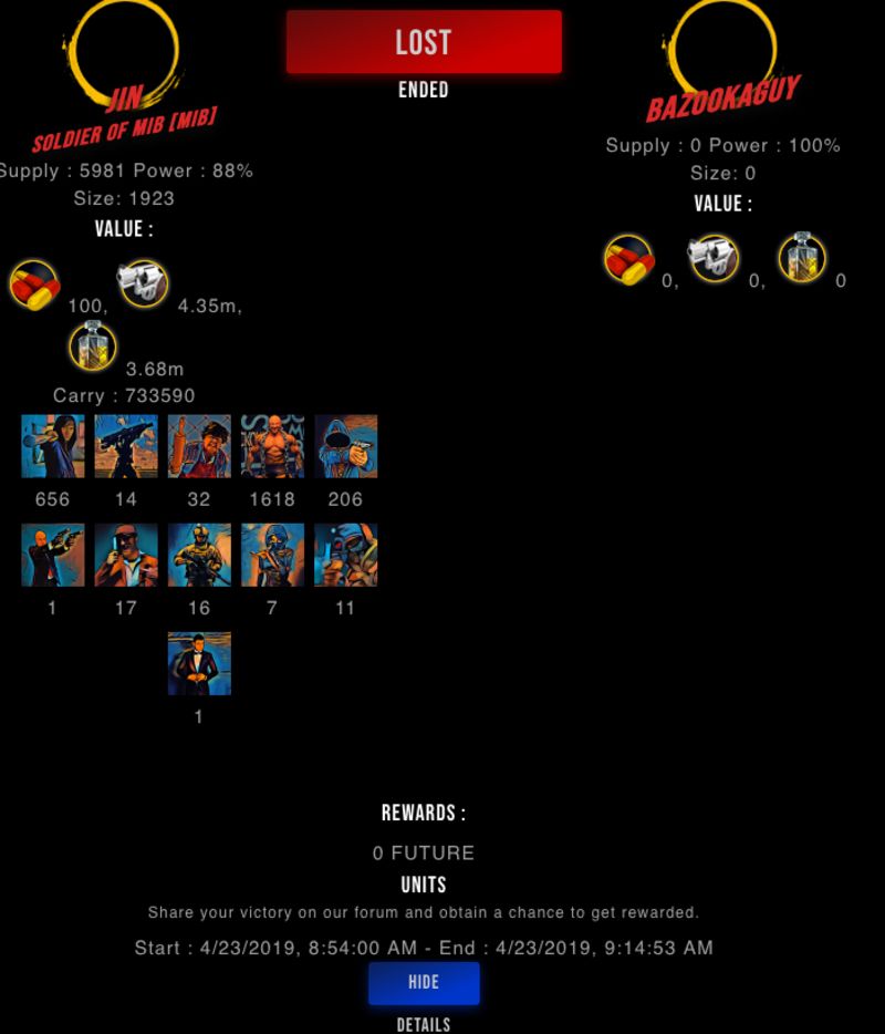 Congratulations @bazookaguy ! Your fight received an upvote of 0.6% from the King Dealer as incentive for your activity and as a gratitude for your support to the game.