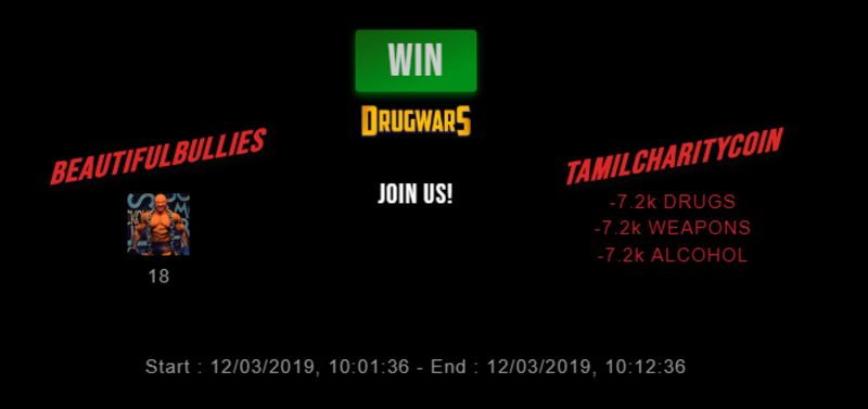 Check my latest fight ! beautifulbullies vs tamilcharitycoinbeautifulbullies (66)in #drugwars-fight • 7 years ago #gaming #fight #dw