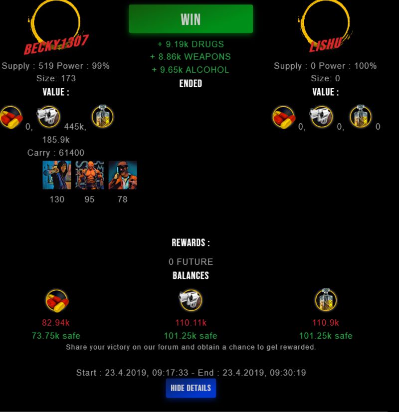 Congratulations @becky1307 ! Your fight received an upvote of 1% from the King Dealer as incentive for your activity and as a gratitude for your support to the game.