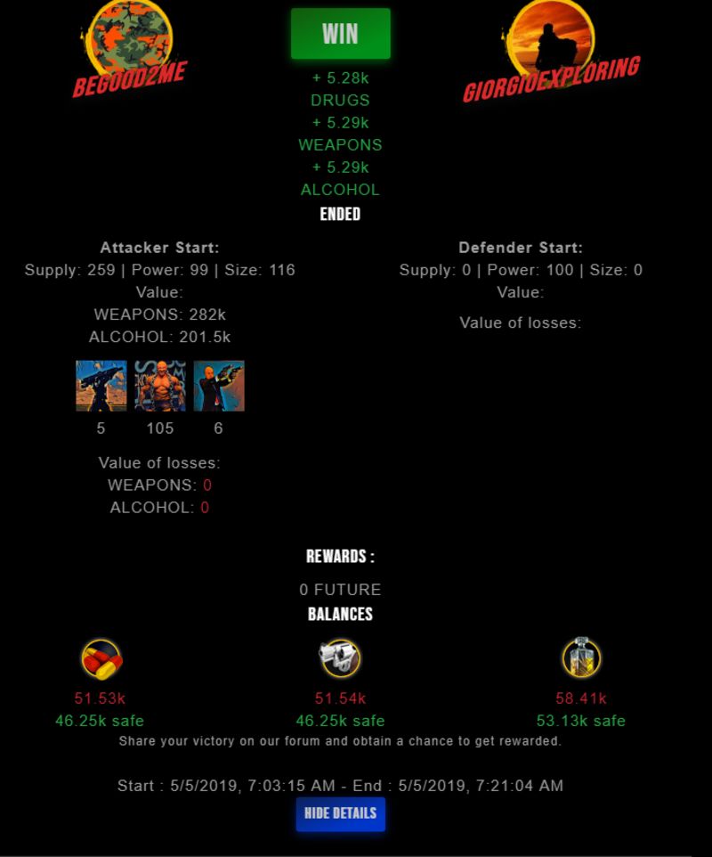 Check my latest fight ! begood2me vs giorgioexploringbegood2me (54)in #drugwars-fight • 7 years ago #gaming #fight #dw