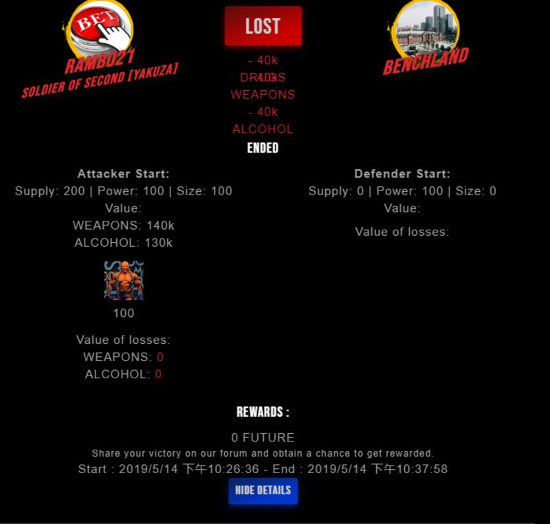 Check my latest fight ! rambo21 vs benchlandbenchland (29)in #drugwars-fight • 7 years ago #gaming #fight #dw