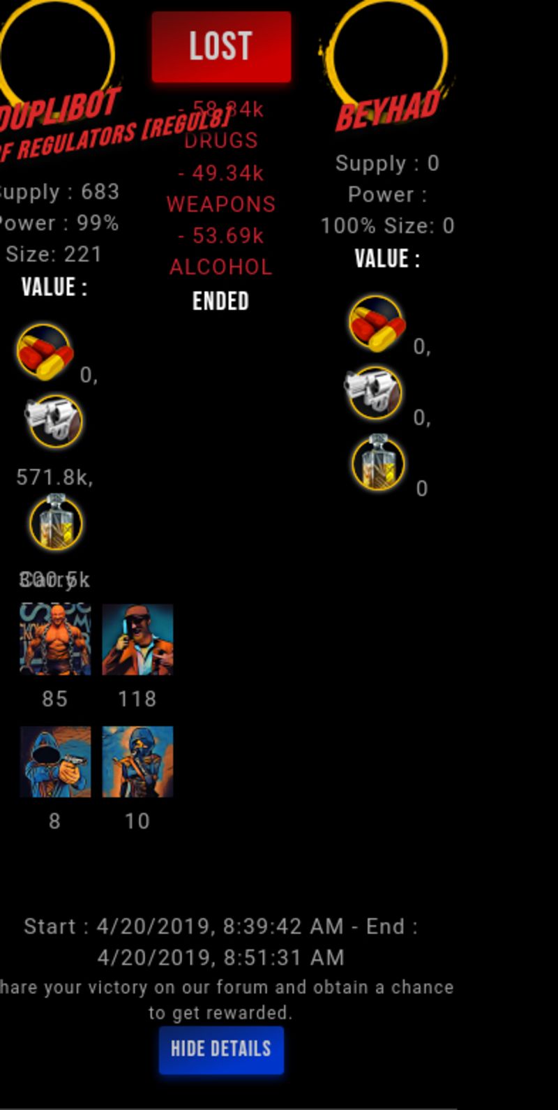 Check my latest fight ! undefined vs undefinedbeyhad (45)in #drugwars-fight • 7 years ago #gaming #fight #dw