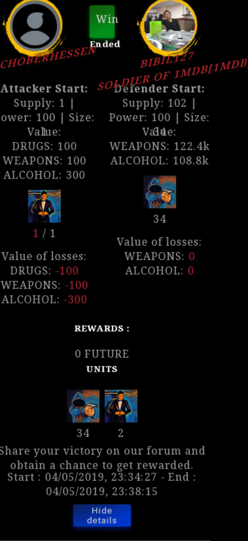 Check my latest fight ! schachoberhessen vs bibil127bibil127 (43)in #drugwars-fight • 7 years ago #gaming #fight #dw