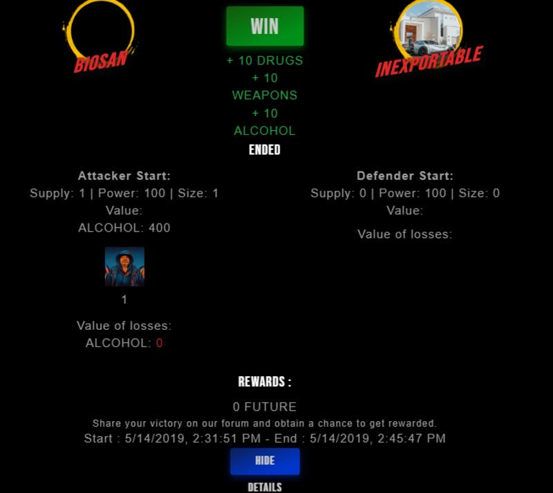 Congratulations @biosan ! Your fight received an upvote of 2.3% from the King Dealer as incentive for your activity and as a gratitude for your support to the game.