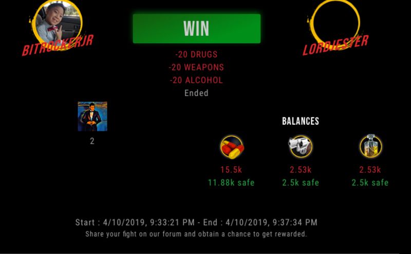 Check my latest fight ! bitrockerjr vs lordjesterbitrockerjr (43)in #drugwars-fight • 7 years ago #gaming #fight #dw