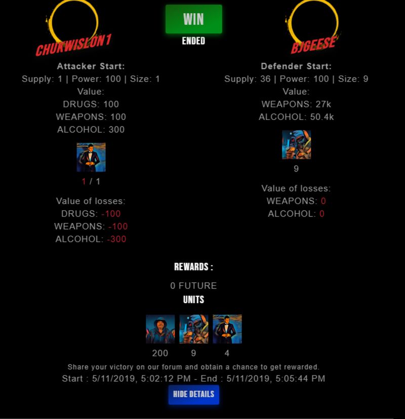 Congratulations @bjgeese ! Your fight received an upvote of 2.7% from the King Dealer as incentive for your activity and as a gratitude for your support to the game.