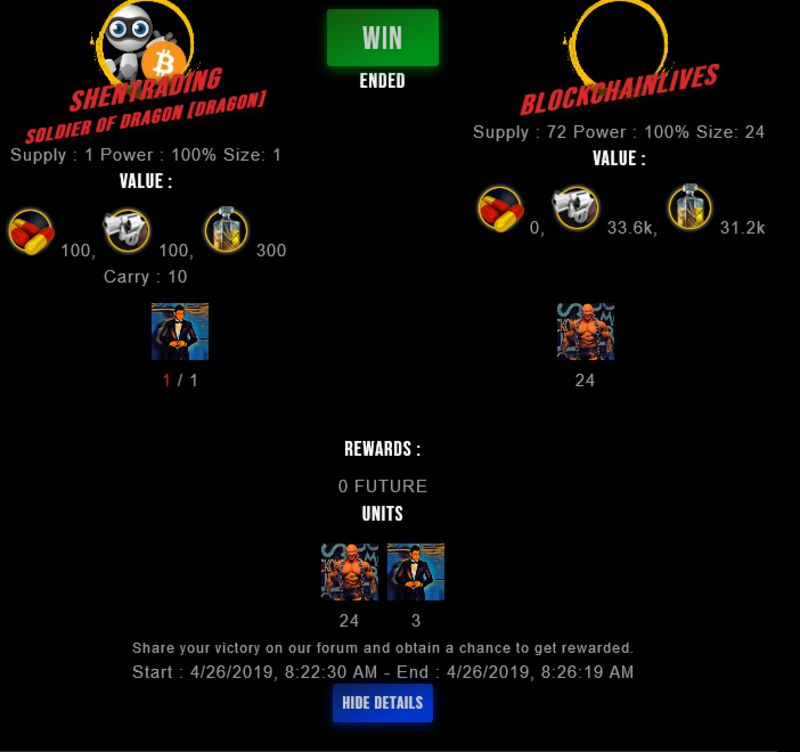 Check my latest fight ! shentrading vs blockchainlivesblockchainlives (45)in #drugwars-fight • 7 years ago #gaming #fight #dw