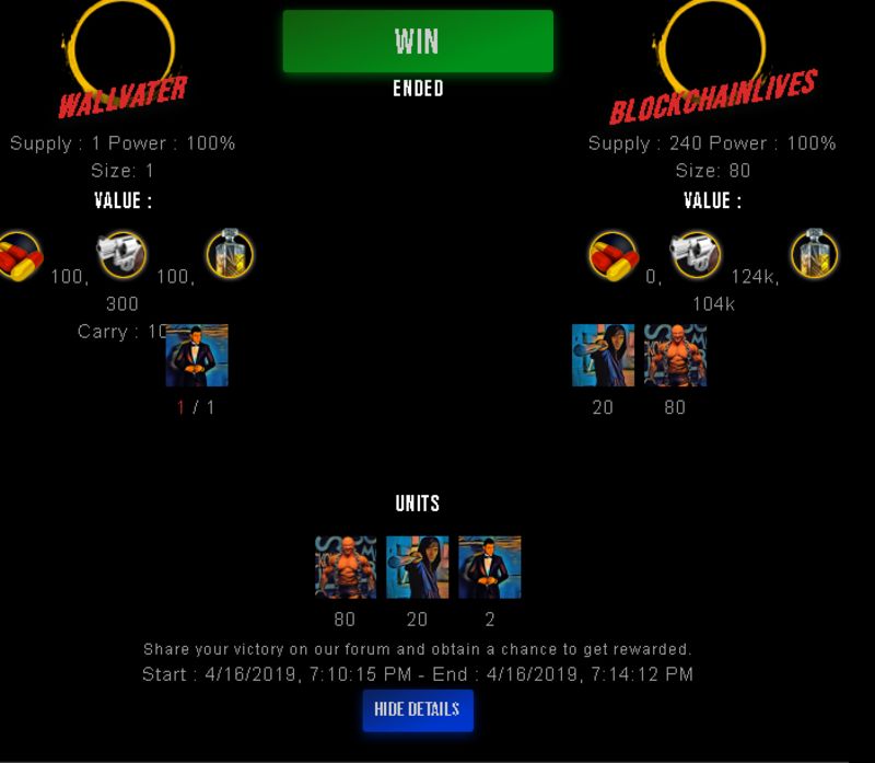 Check my latest fight ! wallvater vs blockchainlivesblockchainlives (45)in #drugwars-fight • 7 years ago #gaming #fight #dw
