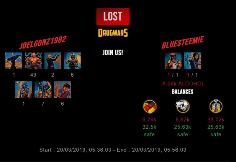 Check my latest fight ! joelgonz1982 vs bluesteemiebluesteemie (32)in #drugwars-fight • 7 years ago #gaming #fight #dw