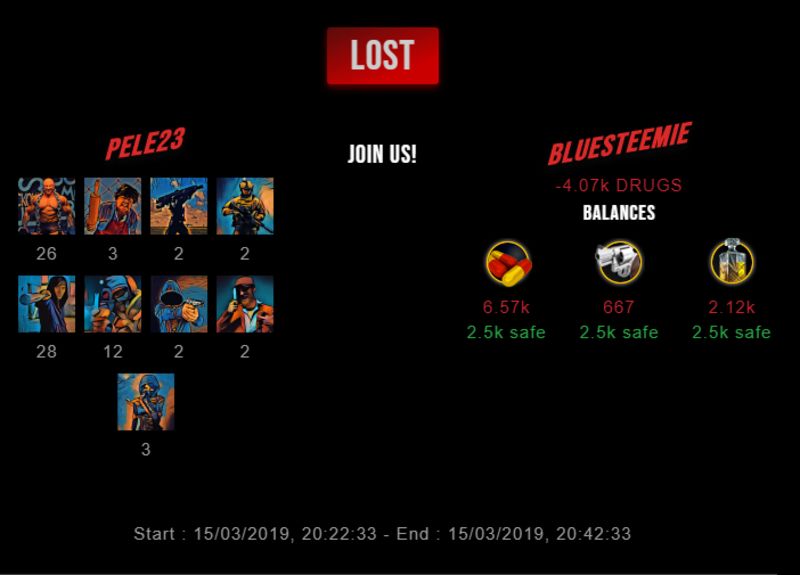 Check my latest fight ! pele23 vs bluesteemiebluesteemie (32)in #drugwars-fight • 7 years ago #gaming #fight #dw