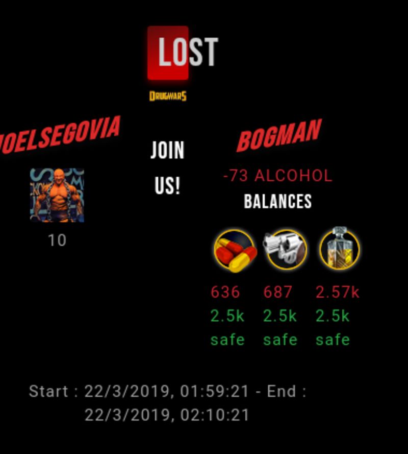 Check my latest fight ! joelsegovia vs bogmanbogman (41)in #drugwars-fight • 7 years ago #gaming #fight #dw