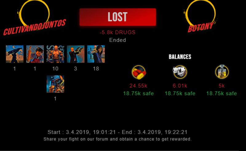 Check my latest fight ! cultivandojuntos vs botonybotony (33)in #drugwars-fight • 7 years ago #gaming #fight #dw