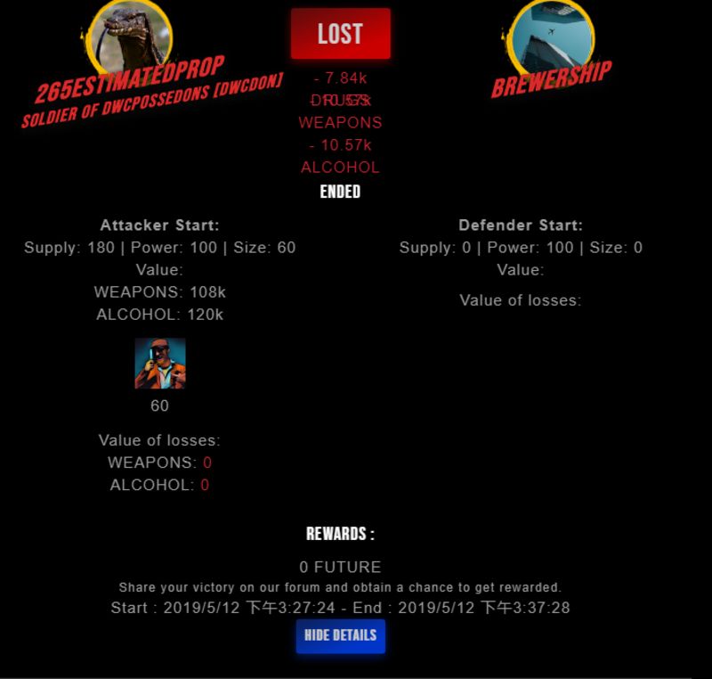 Check my latest fight ! 265estimatedpr0p vs brewershipbrewership (25)in #drugwars-fight • 7 years ago #gaming #fight #dw