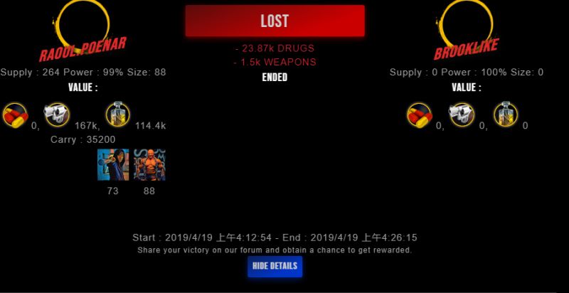 Check my latest fight ! undefined vs undefinedbrooklike (25)in #drugwars-fight • 7 years ago #gaming #fight #dw