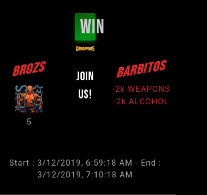 Check my latest fight ! brozs vs barbitosbrozs (40)in #drugwars-fight • 7 years ago #gaming #fight #dw