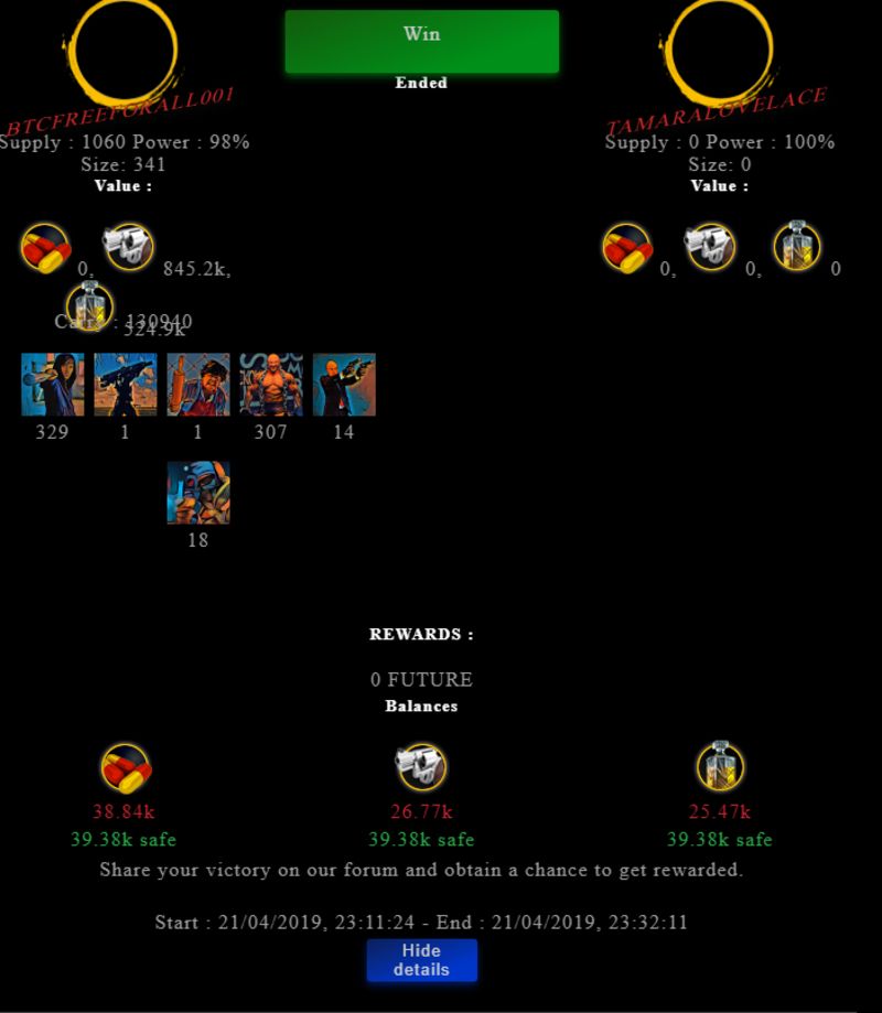 Check my latest fight ! btcfreeforall001 vs tamaralovelacebtcfreeforall001 (50)in #drugwars-fight • 7 years ago #gaming #fight #dw