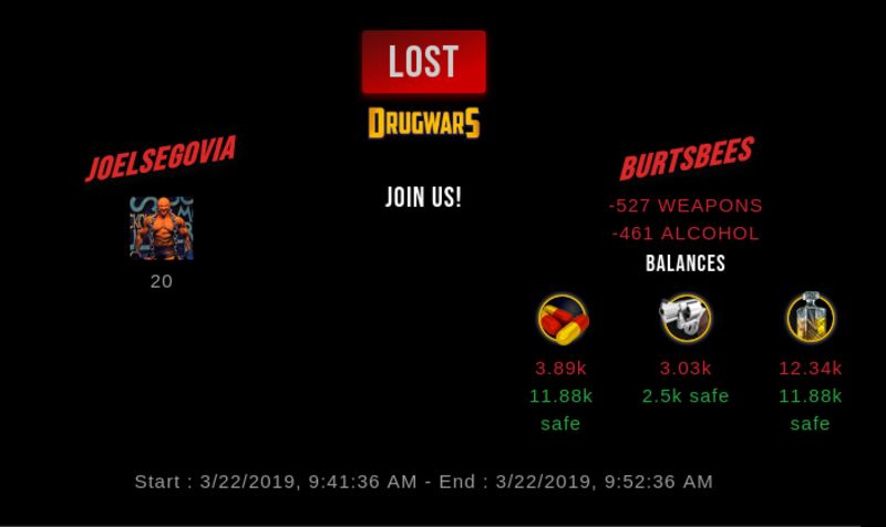 Check my latest fight ! joelsegovia vs burtsbeesburtsbees (25)in #drugwars-fight • 7 years ago #gaming #fight #dw