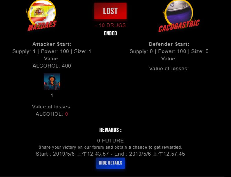 Check my latest fight ! mazdaes vs cacogastriccacogastric (26)in #drugwars-fight • 7 years ago #gaming #fight #dw
