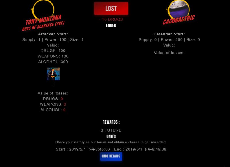 Check my latest fight ! tony montana vs cacogastriccacogastric (26)in #drugwars-fight • 7 years ago #gaming #fight #dw