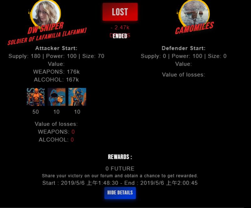 Congratulations @camomiles ! Your fight received an upvote of 12% from the Dealer as incentive for your activity and as a gratitude for your support to the game.