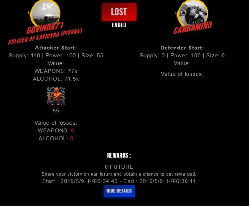 Congratulations @carbamino ! Your fight received an upvote of 10% from the Dealer as incentive for your activity and as a gratitude for your support to the game.