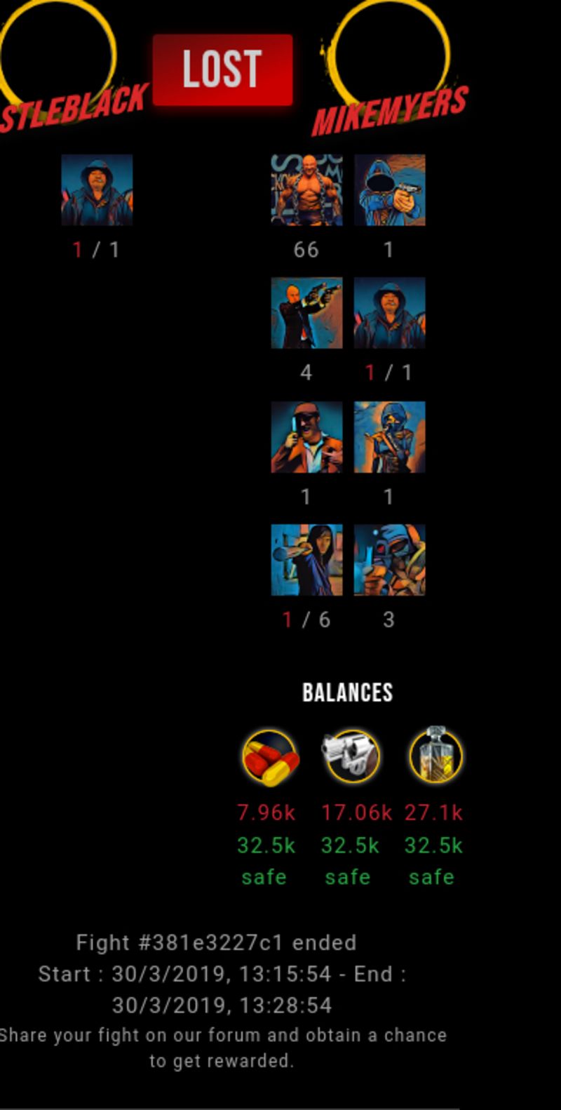 Check my latest fight ! castleblack vs mikemyerscastleblack (43)in #drugwars-fight • 7 years ago #gaming #fight #dw
