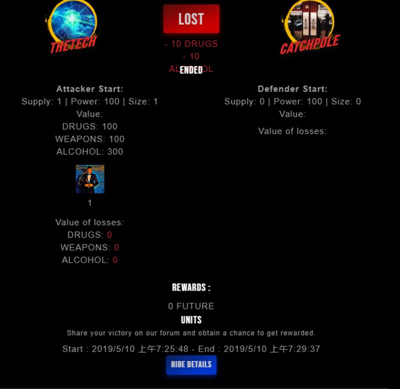 Congratulations @catchpole ! Your fight received an upvote of 10% from the Dealer as incentive for your activity and as a gratitude for your support to the game.
