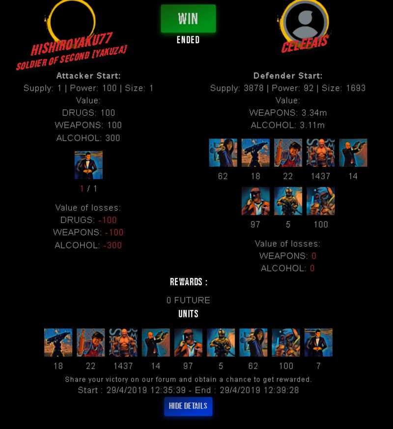 Check my latest fight ! hishiroyaku77 vs celefaiscelefais (45)in #drugwars-fight • 7 years ago #gaming #fight #dw