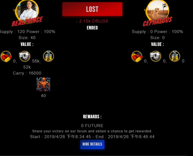 Check my latest fight ! realprince vs cephalouscephalous (27)in #drugwars-fight • 7 years ago #gaming #fight #dw