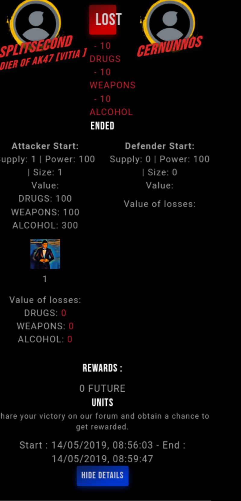 Check my latest fight ! splitsecond vs cernunnoscernunnos (33)in #drugwars-fight • 7 years ago #gaming #fight #dw
