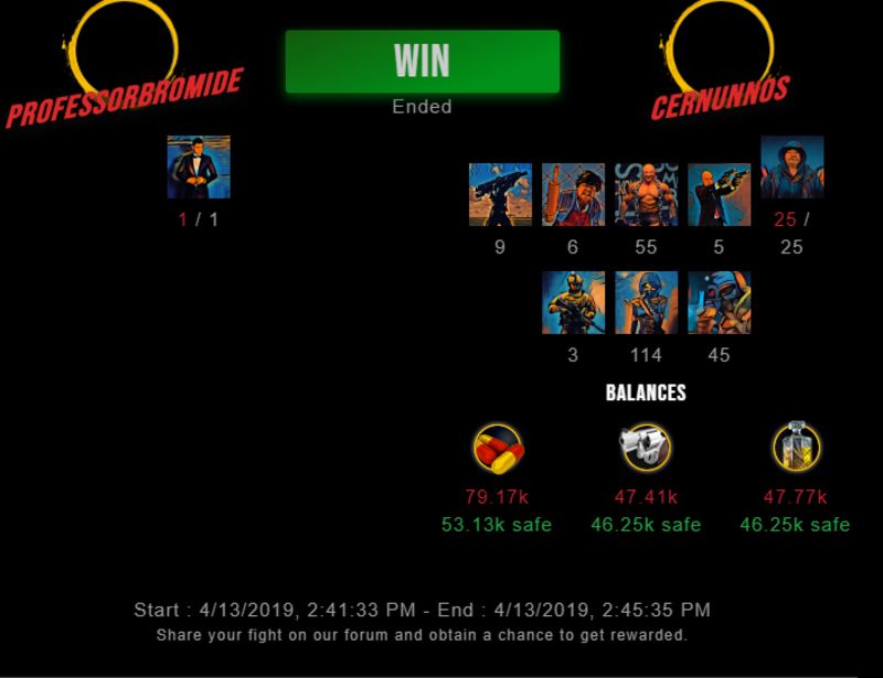 Check my latest fight ! professorbromide vs cernunnoscernunnos (33)in #drugwars-fight • 7 years ago #gaming #fight #dw