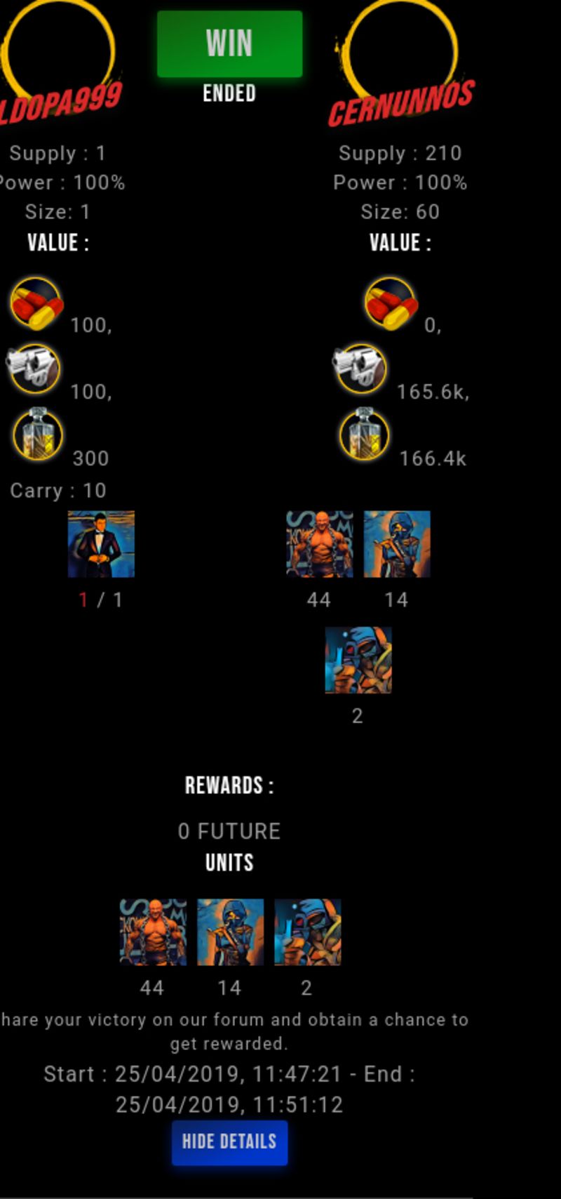 Congratulations @cernunnos ! Your fight received an upvote of 5% from the Dealer as incentive for your activity and as a gratitude for your support to the game.