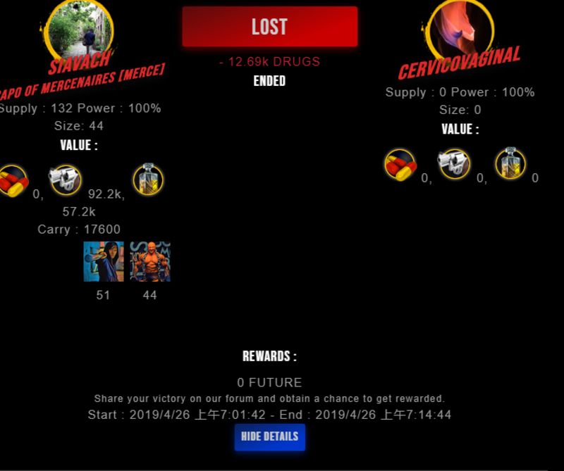 Check my latest fight ! siavach vs cervicovaginalcervicovaginal (25)in #drugwars-fight • 7 years ago #gaming #fight #dw