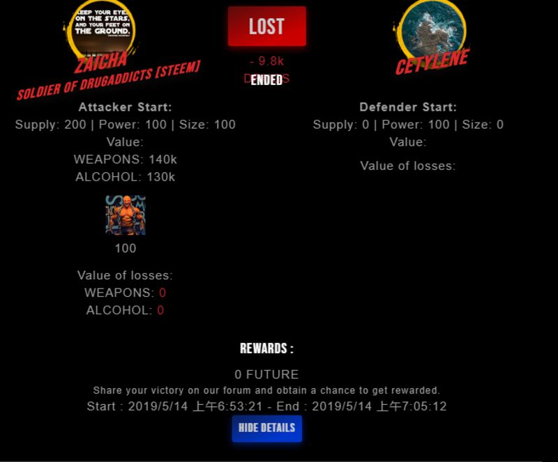 Congratulations @cetylene ! Your fight received an upvote of 10% from the Dealer as incentive for your activity and as a gratitude for your support to the game.