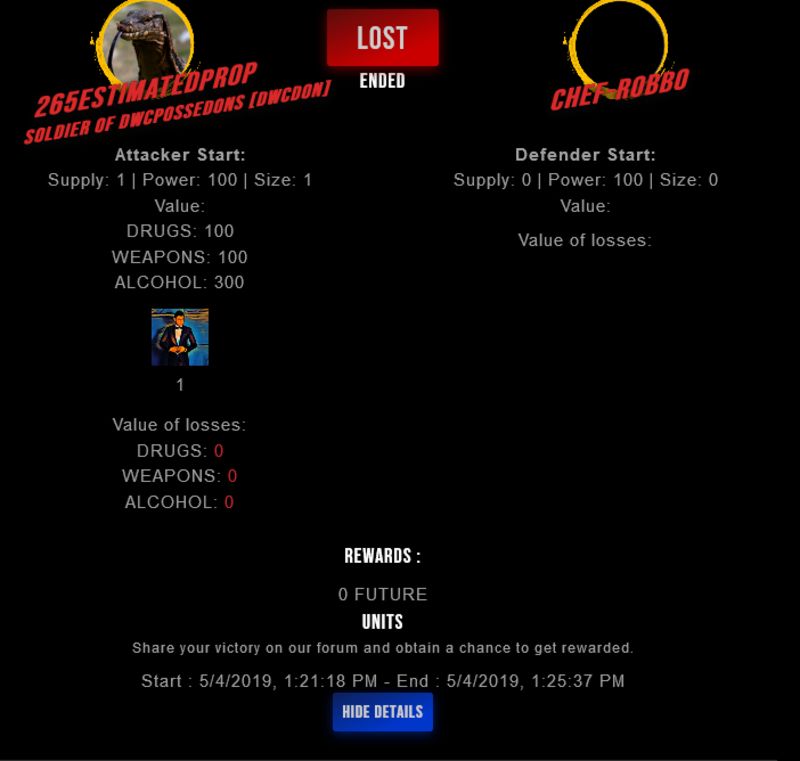 Check my latest fight ! 265estimatedpr0p vs chef-robbochef-robbo (38)in #drugwars-fight • 7 years ago #gaming #fight #dw