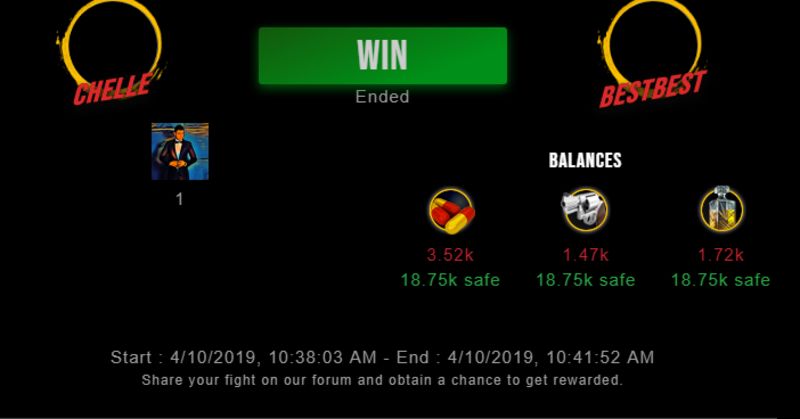 Congratulations @chelle ! Your fight received an upvote of 1.9% from the King Dealer as incentive for your activity and as a gratitude for your support to the game.