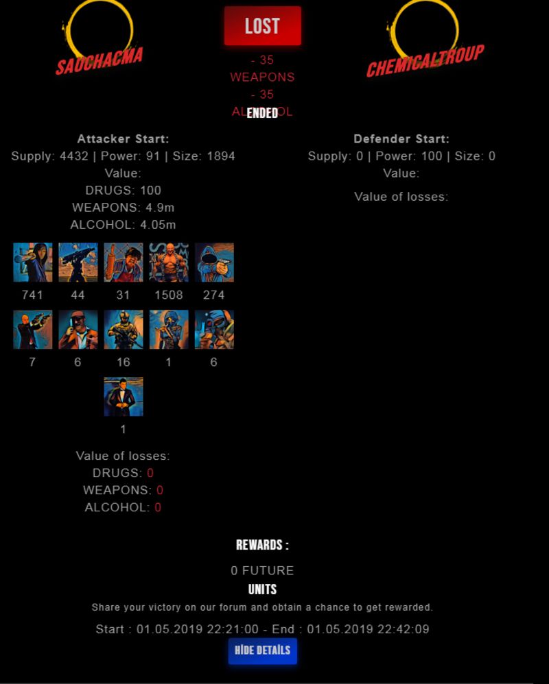 Check my latest fight ! sauchacma vs chemicaltroupchemicaltroup (38)in #drugwars-fight • 7 years ago #gaming #fight #dw