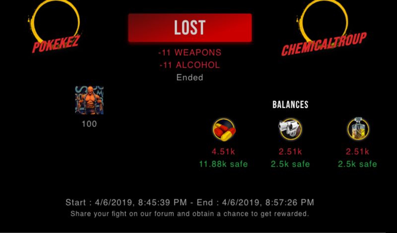 Check my latest fight ! pokekez vs chemicaltroupchemicaltroup (38)in #drugwars-fight • 7 years ago #gaming #fight #dw