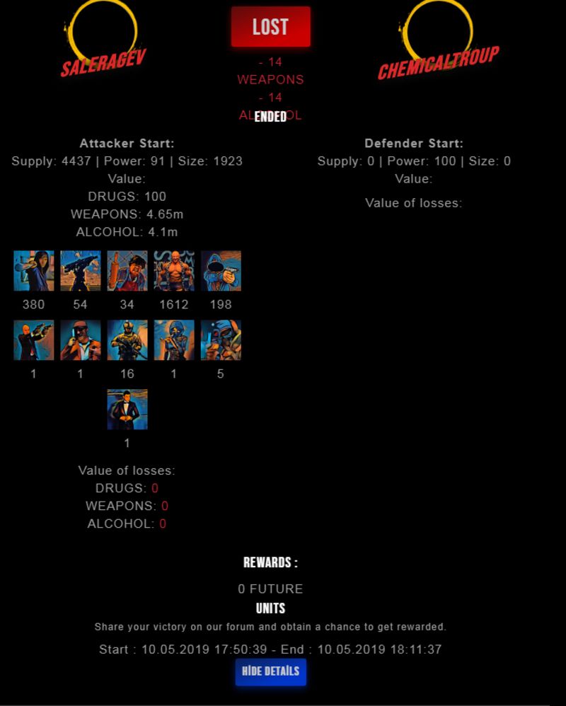 Check my latest fight ! saleragev vs chemicaltroupchemicaltroup (38)in #drugwars-fight • 7 years ago #gaming #fight #dw