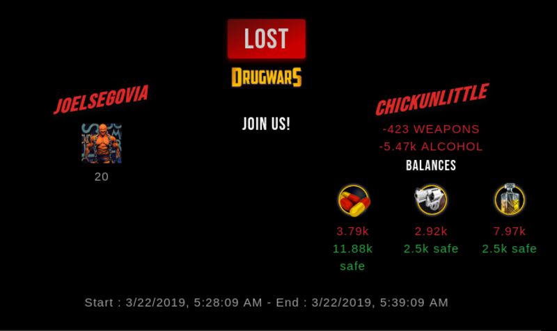 Check my latest fight ! joelsegovia vs chickunlittlechickunlittle (25)in #drugwars-fight • 7 years ago #gaming #fight #dw