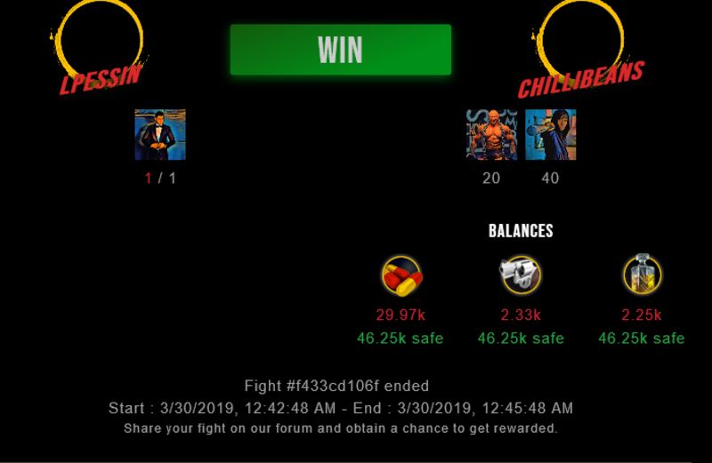 Check my latest fight ! lpessin vs chillibeanschillibeans (61)in #drugwars-fight • 7 years ago #gaming #fight #dw