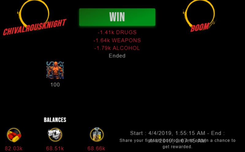 Check my latest fight ! chivalrousknight vs b00mchivalrousknight (25)in #drugwars-fight • 7 years ago #gaming #fight #dw
