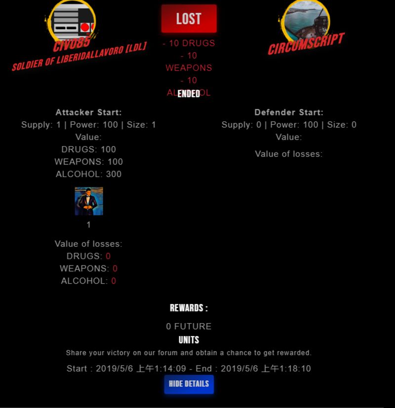 Check my latest fight ! civo85 vs circumscriptcircumscript (25)in #drugwars-fight • 7 years ago #gaming #fight #dw
