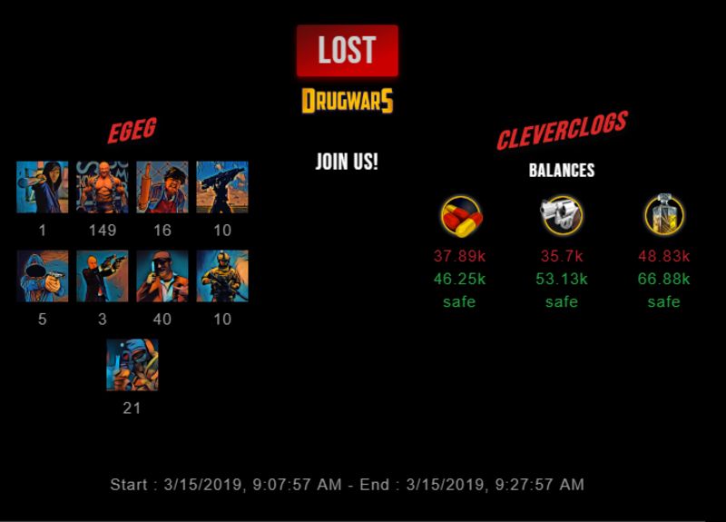 Check my latest fight ! egeg vs cleverclogscleverclogs (31)in #drugwars-fight • 7 years ago #gaming #fight #dw