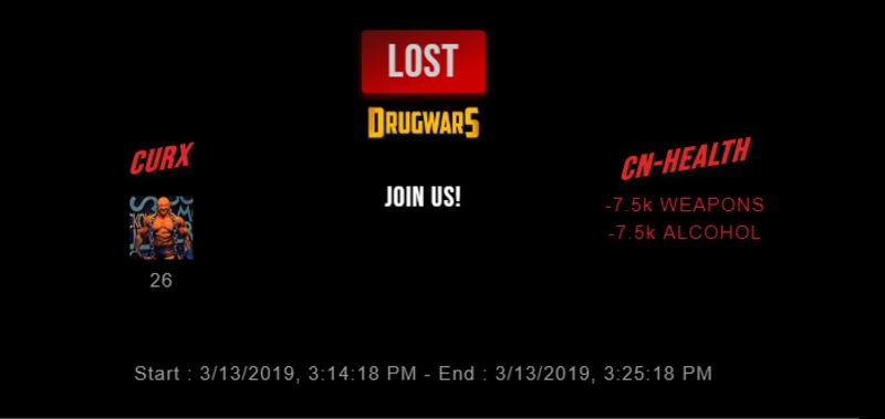 Check my latest fight ! curx vs cn-healthcn-health (33)in #drugwars-fight • 7 years ago #gaming #fight #dw